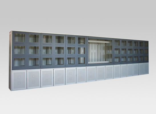2、材質:立柱及主框架采用優質冷軋鋼板厚1.5-2.0mm,門板及面板采 用1.2mm優質冷軋鋼板,保證安裝強度。